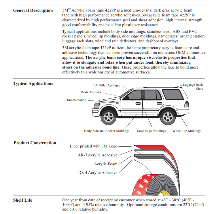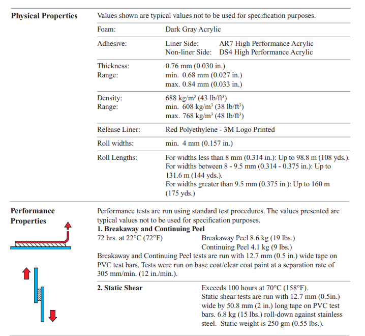 - 深灰色0.76毫米丙烯酸泡棉芯在高負載下提供應力松弛,在正常負載下保持粘合線美觀