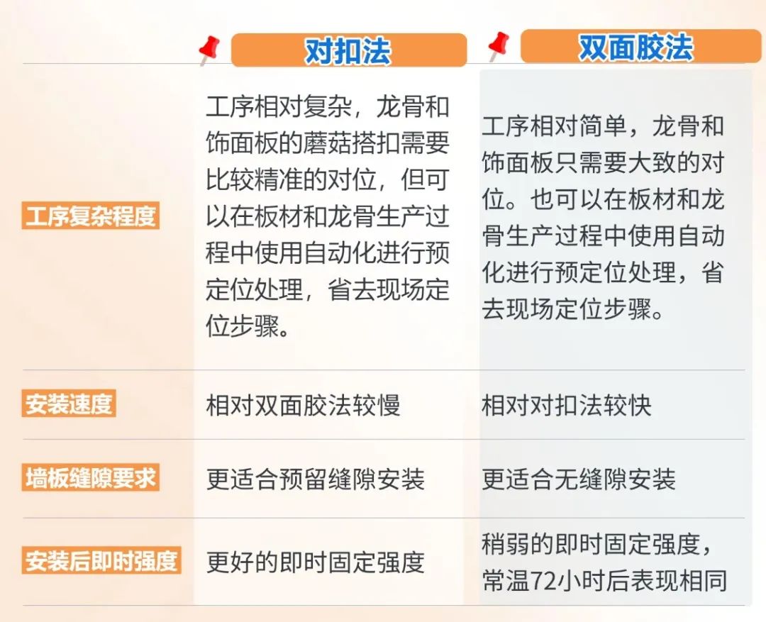 如果能借助工具或自動化流程在板材和龍骨生產過程中進行預定位處理,并且板面之間需要預留縫隙的情況下,推薦采用對扣法進行安裝,使安裝后獲得更好的即時強度。