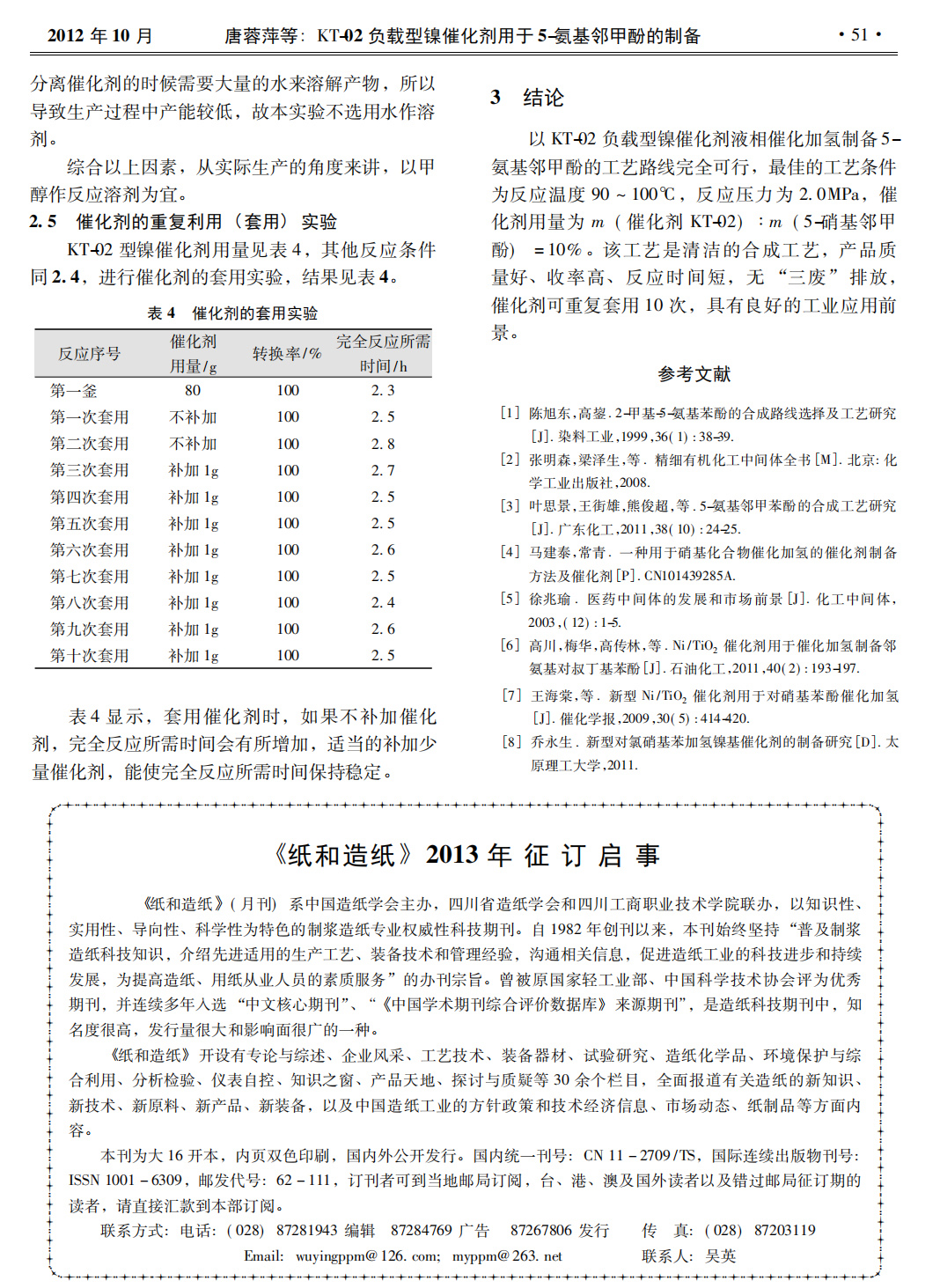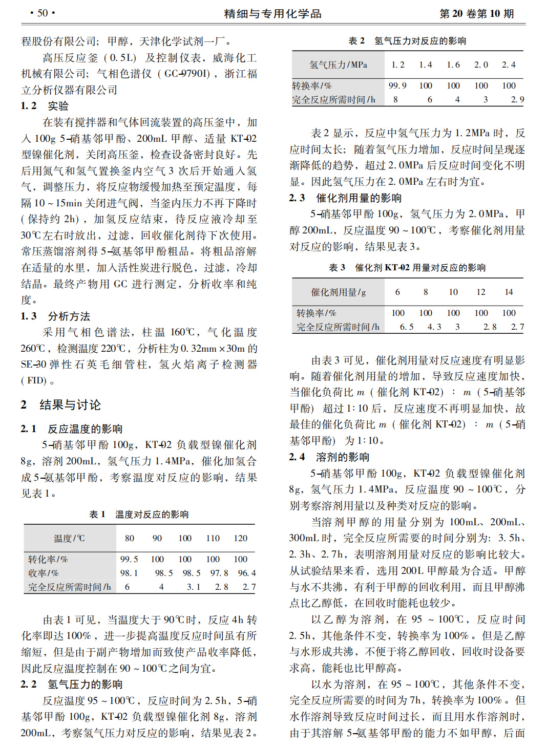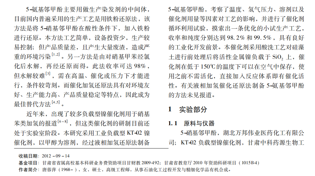 KT-02 負載型鎳催化劑用于 5-氨基 鄰甲酚的制備