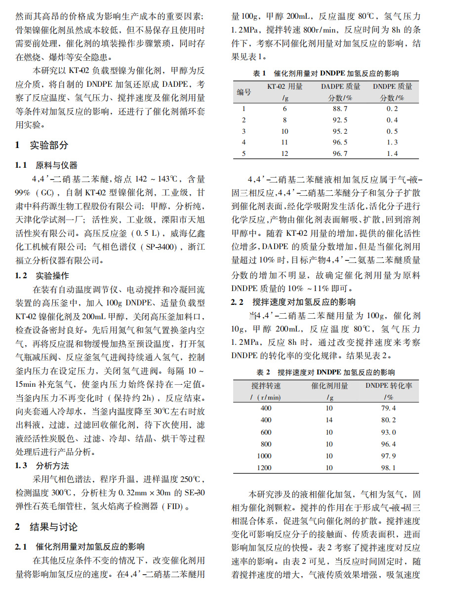 KT-02 負(fù)載型鎳催化劑作用下合成 4,4’-二氨基二苯醚的工藝研究