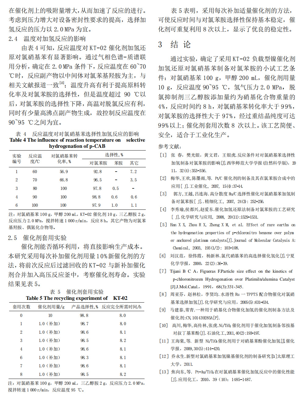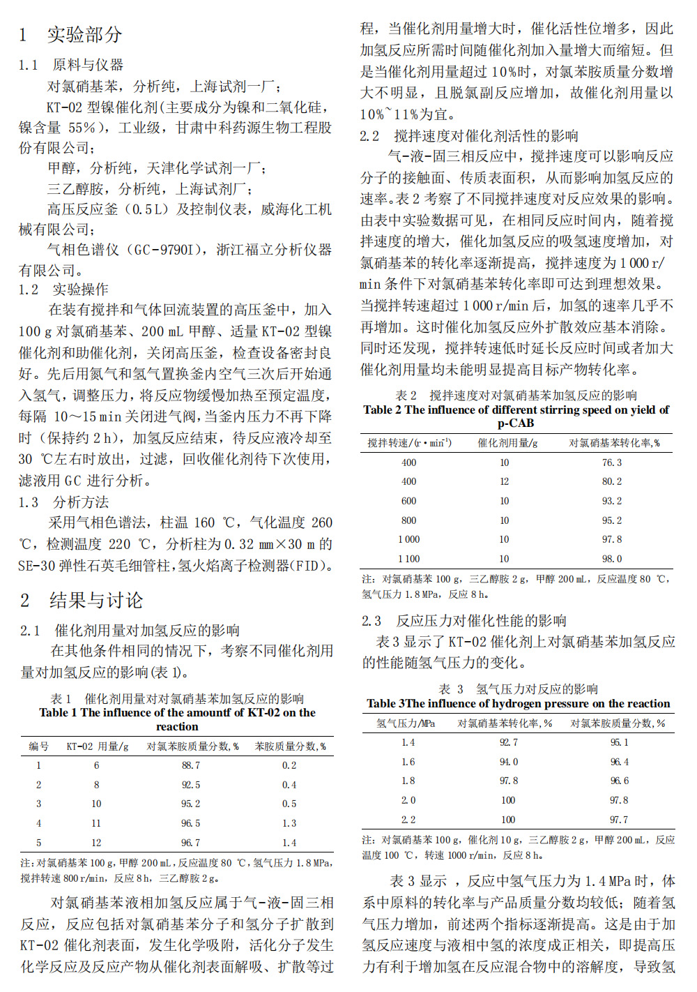 負載型鎳催化劑用于催化加氫制備對氯苯胺