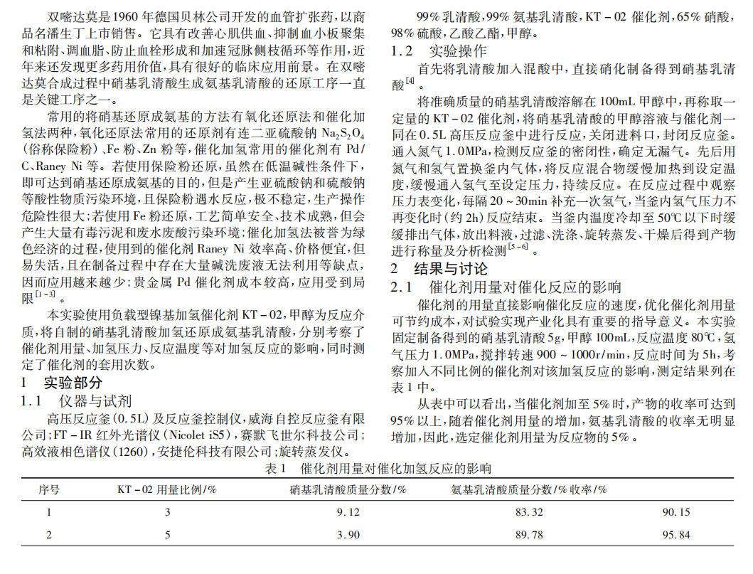 新型負載型催化劑加氫還原制備氨基乳清酸