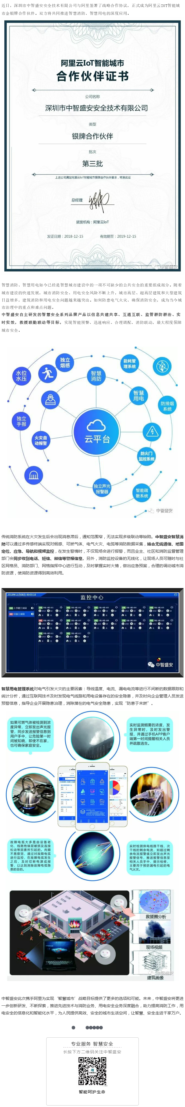 恭喜中智盛安成為阿里巴巴智慧城市金銀牌合作伙伴,共同推進(jìn)智慧消防、智慧用電的深度應(yīng)用