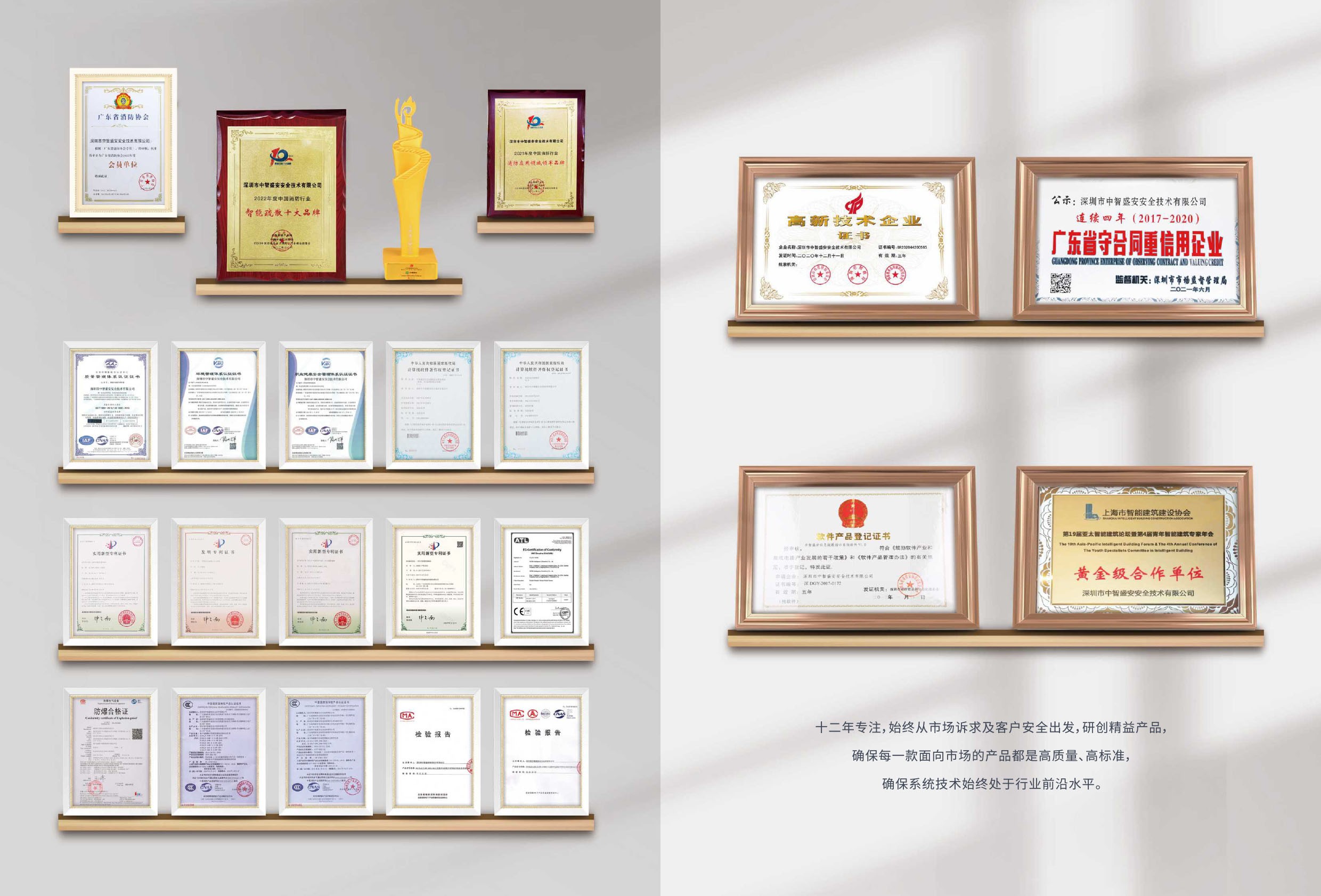 深圳市中智盛安安全技術有限公司成立于2011年,是消防應急照明和疏散指示系統、智能照明、物聯車庫照明系統的知名品牌。并自主研發、制造、銷售、服務為一體的建筑工程照明解決方案提供商,國家級高新技術企業。公司廠區占地面積約10000㎡,全廠近300員職工,其中技術研發人員50余人,高級技術研發人才5人,中級技術研發人才12人,工程技術人員30余人。公司與國內外多所高等院校或科研機構開展了科研合作,擁有多項發明、實用新型、外觀專利及軟件著作權。